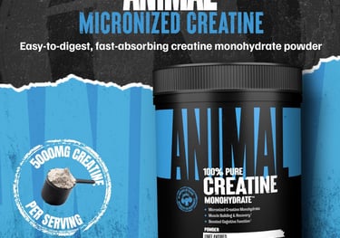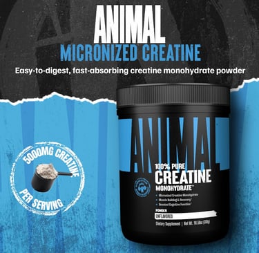 Animal Creatine Monohydrate Powder is a micronized creatine monohydrate designed for both women and men looking to improve strength, performance, and recovery. Its pure, unflavored formula mixes easily and absorbs efficiently, supporting ATP production—the body’s primary energy source during intense training.