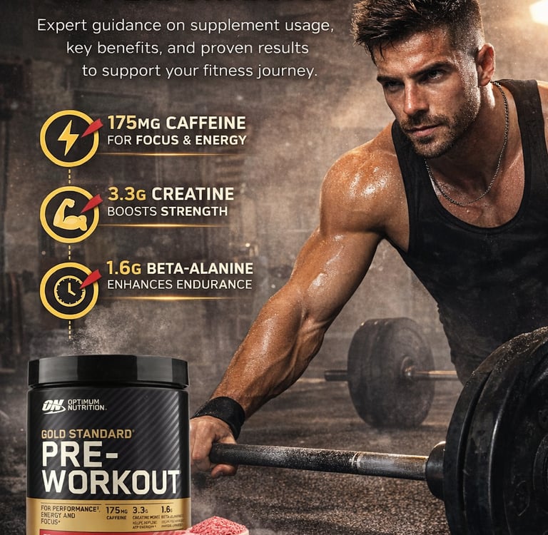 OPTIMUM NUTRITION Gold Standard Pre-Workout is formulated to deliver reliable energy, focus, and performance for intense training sessions. Its blend of creatine, beta-alanine, and caffeine supports strength, muscular endurance, and workout intensity.